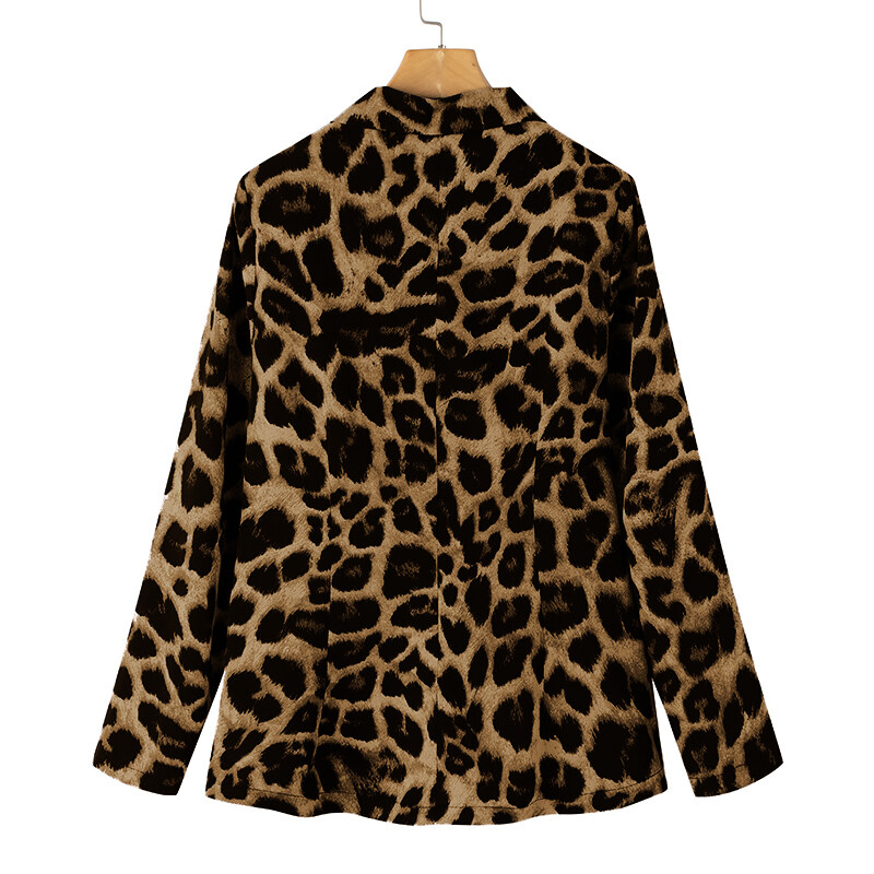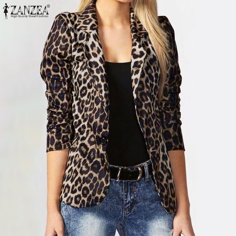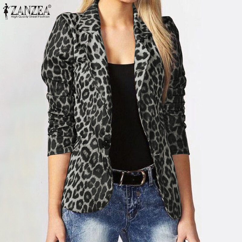 ZANZEA Womens Lapel Long Sleeve Leopard Print Jackets Coat Casual Office Business Blazers