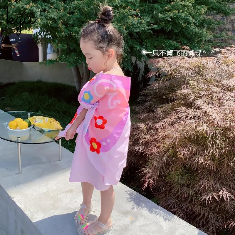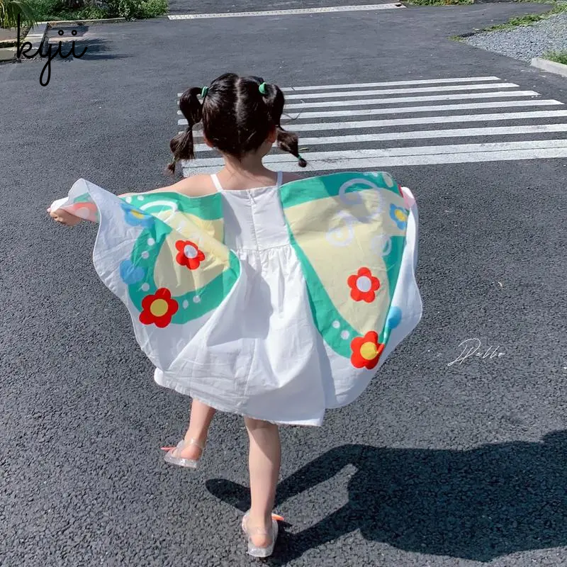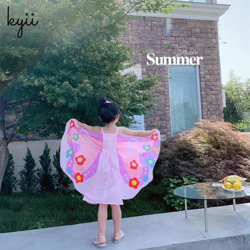 【Hot Selling】KYII Girl Summer Cotton Halter Skirt New Children Cute Butterfly Wings Dress Korean Dress ky016