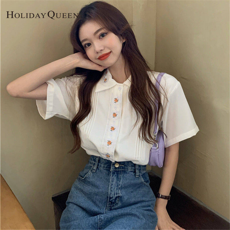 HolidayQueen Girl Summer White Shirt Women's Design Sense Niche Top Summer Short-sleeved ShirtWomen's clothing HQP0903