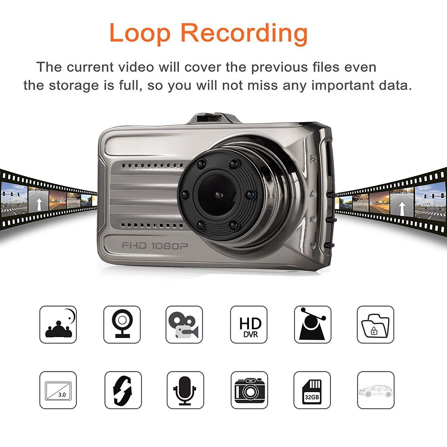-Auto Record, once the vehicle powers on, can automatically turn on and record; Automatically shuts off when the vehicle is turned off.
